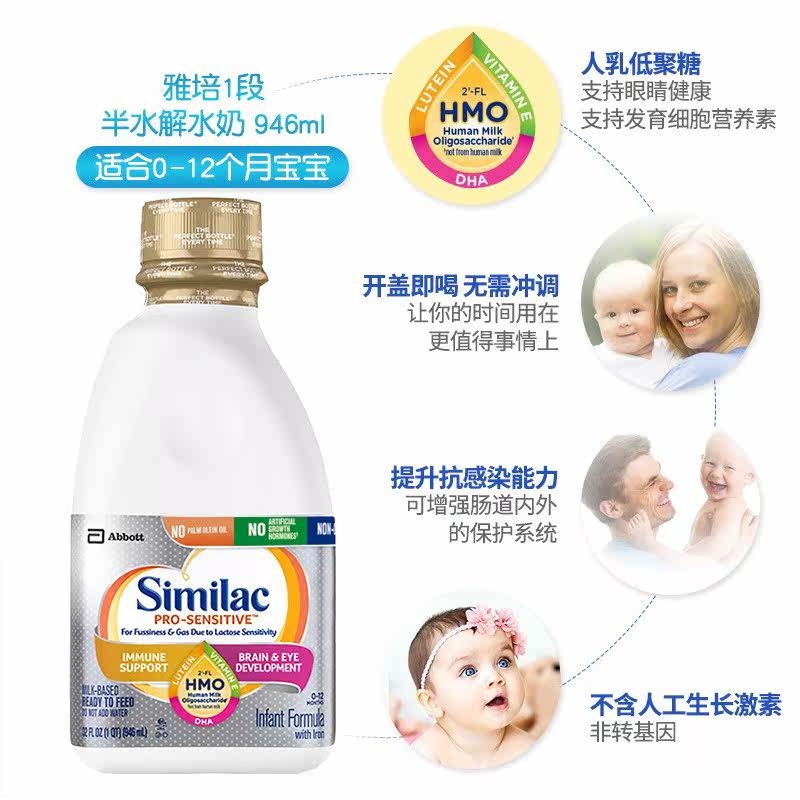 US Direct Mail Similac Abbott 1-stage HMO non-genetically modified hypoallergenic flatulence liquid milk 946ml*8 bottles