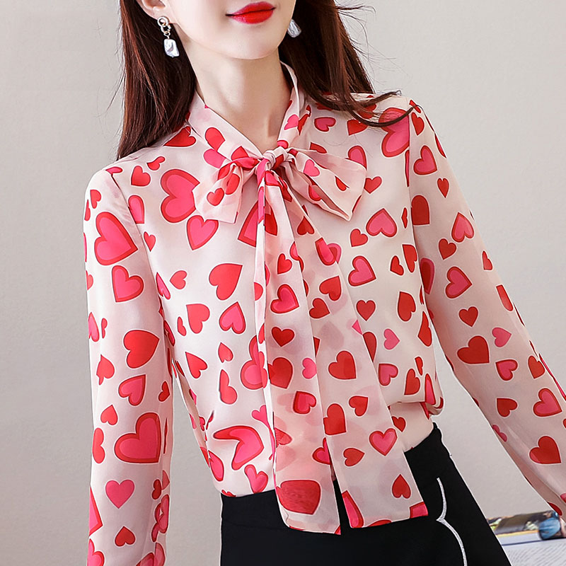 2023 Spring and Autumn New Long - sleeved Retro Love Leaf Butterfly Clothing Care Career Shirt Shirt Tide