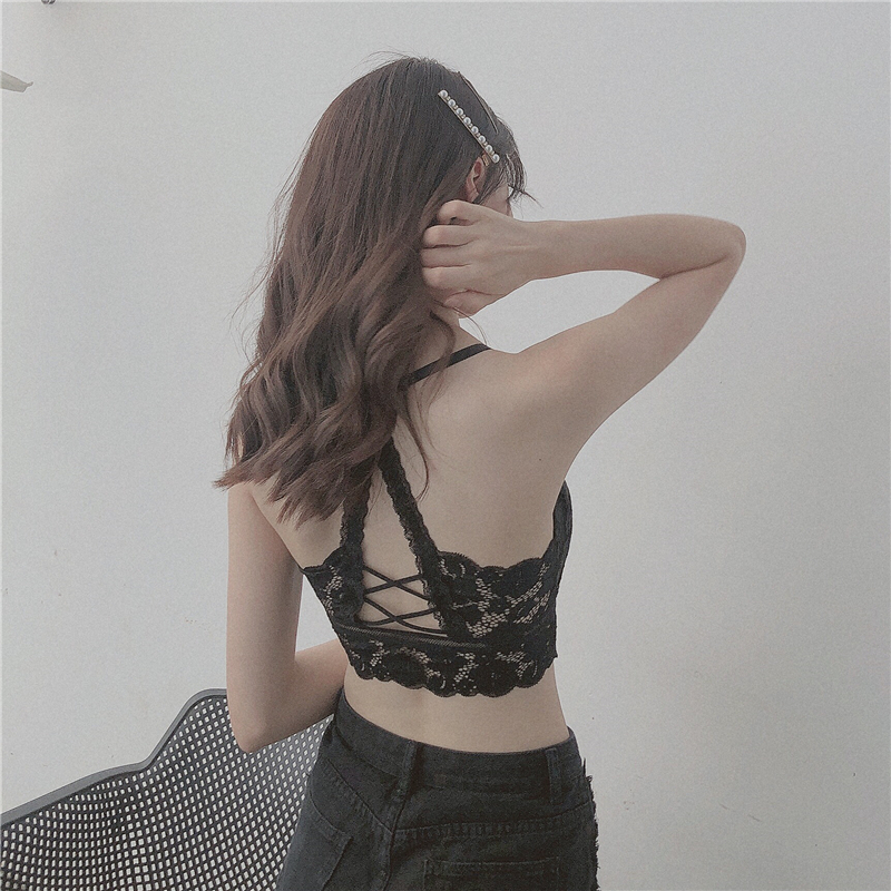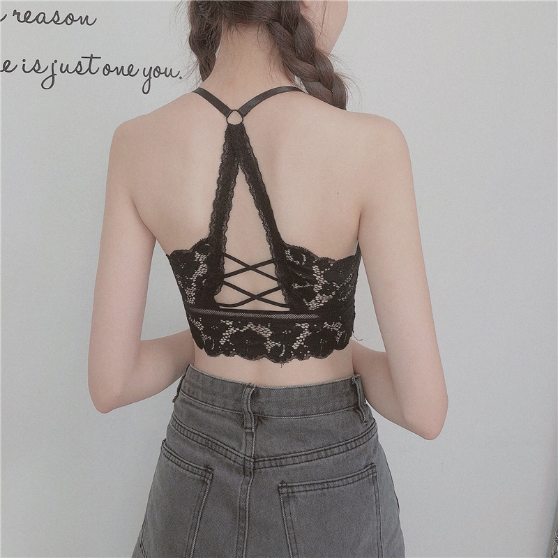 Lace back cross-strap beautiful back bra gathered underwear women's tube top net red hot wrap chest bottoming camisole