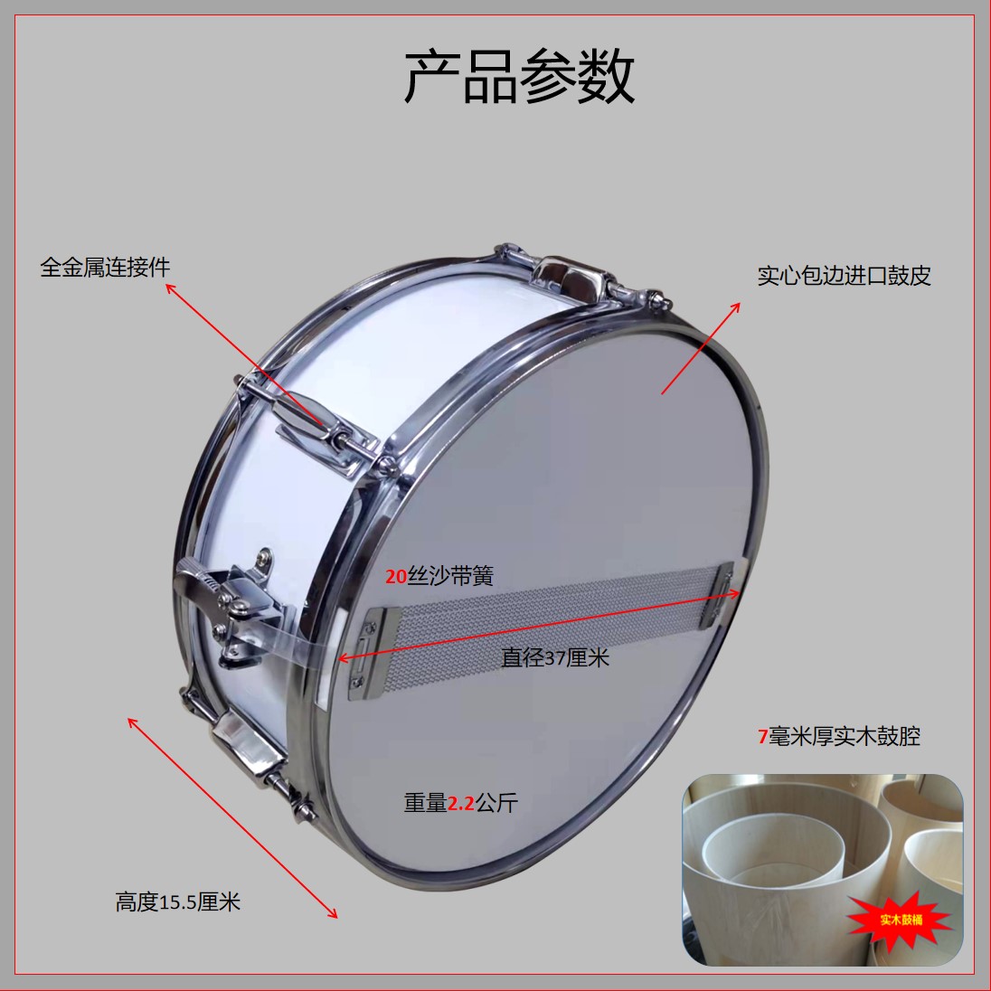 14-inch red wooden chamber holding baby bag small army drum 14-inch white wooden chamber holding baby bag small army drum 14-inch silver wood cavity holding baby bag small army drum 14-inch red wood cavity with back frame small army drum 14 inches