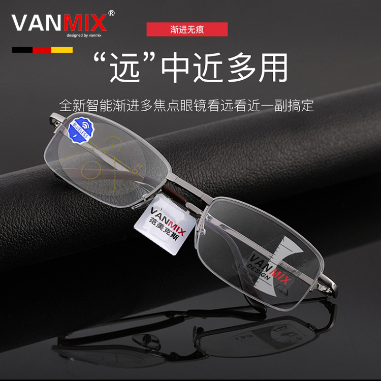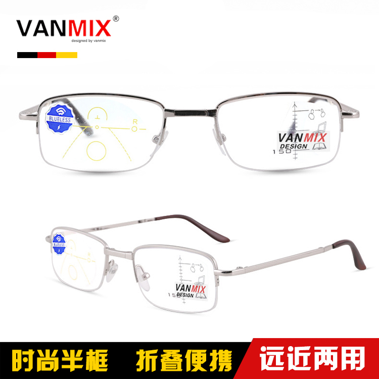 VANMIX progressive multi-focus far and near dual-use presbyopic glasses men and women folding portable zoom anti-blue light elderly glasses