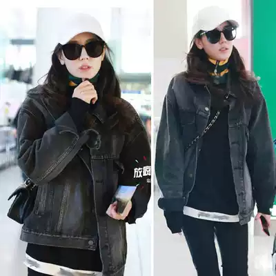Hong Kong 2020 Autumn dress Di Lieba star same Black gray denim coat BF style women loose top tide
