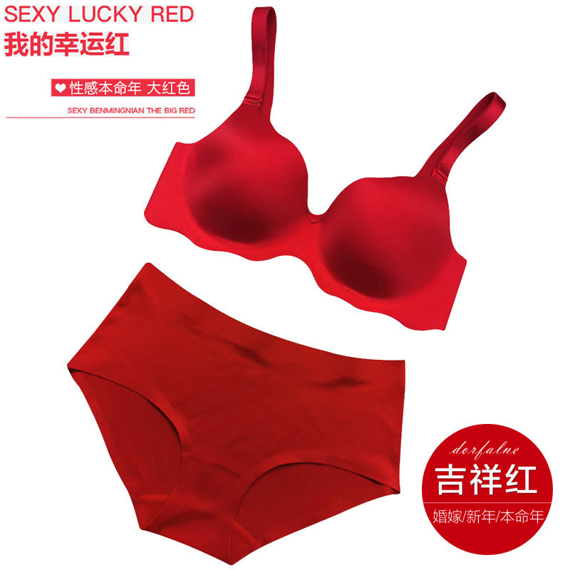 Big red underwear thin suit female wedding bride Benming year bra without steel ring large size seamless bra belongs to cattle