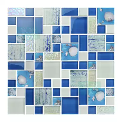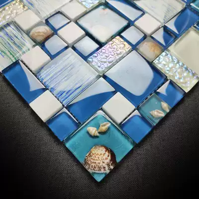 Shell Mediterranean blue mosaic tile background wall glass green powder room decoration living room self-adhesive wall stickers