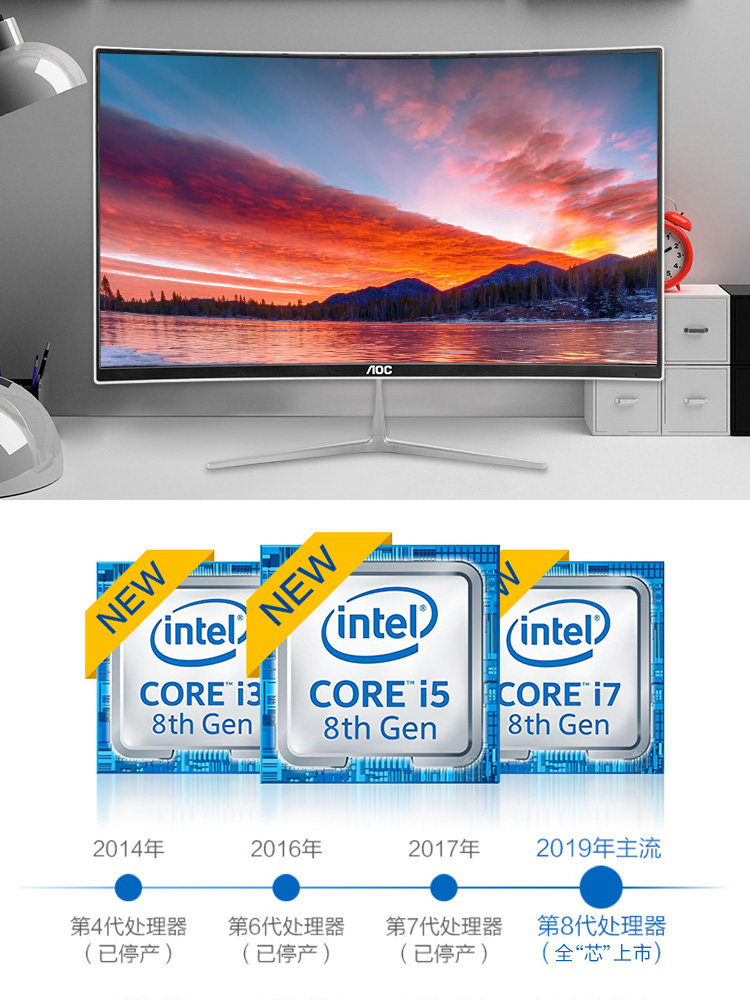 AOC official recommendation 10 generation] 739 all-in-one computer 23 6 inch 10 generation desktop curved home office i7 eight-core high-profile i5 game type curved screen 24 inch curved screen Full Set 27