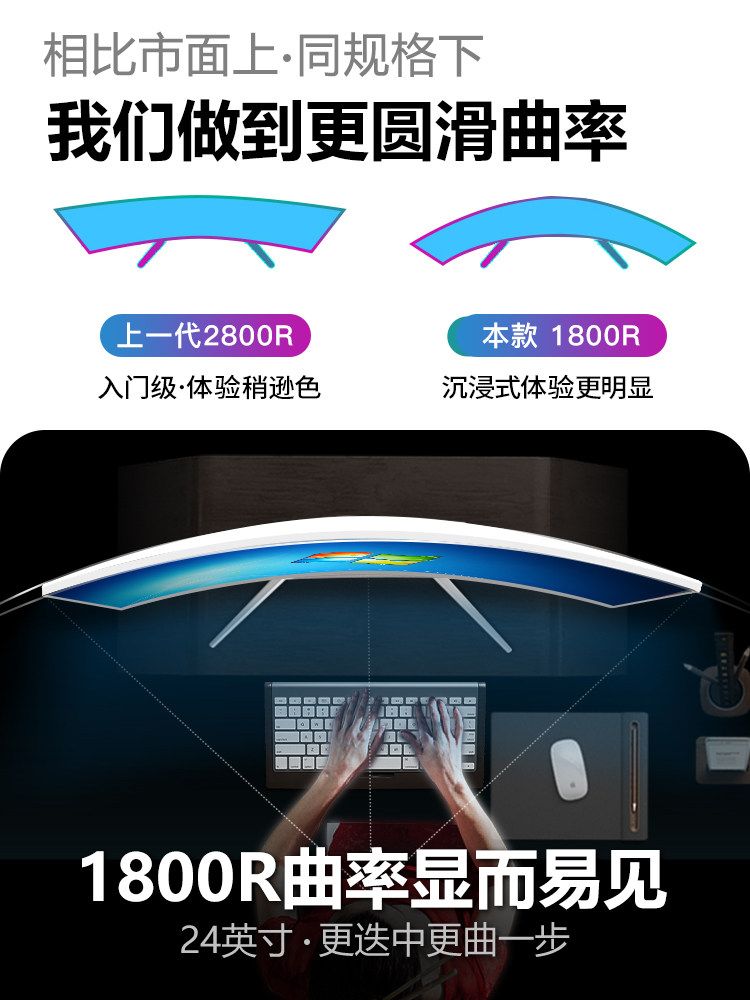 24 inch white surface (1800R) 27 inch lift rotation 1200R curvature (Business Black)
