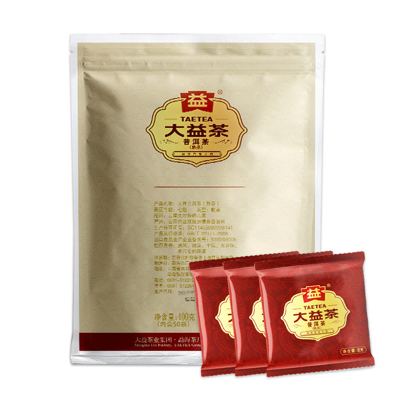 Dayi Pu'er tea 2020 grade seven loose tea cooked tea 50 bags total 400 grams portable Yunnan Menghai tea factory tea