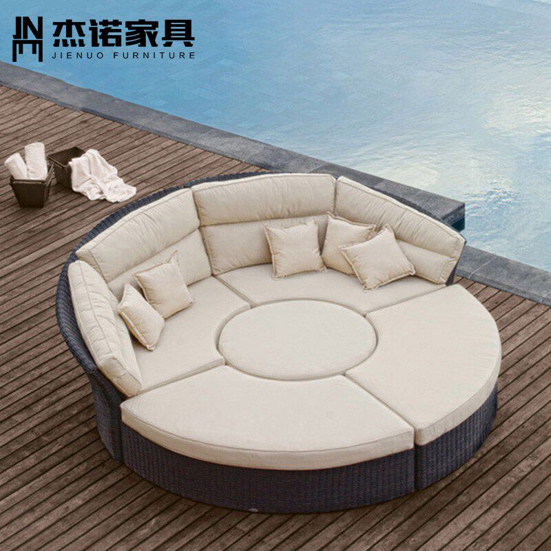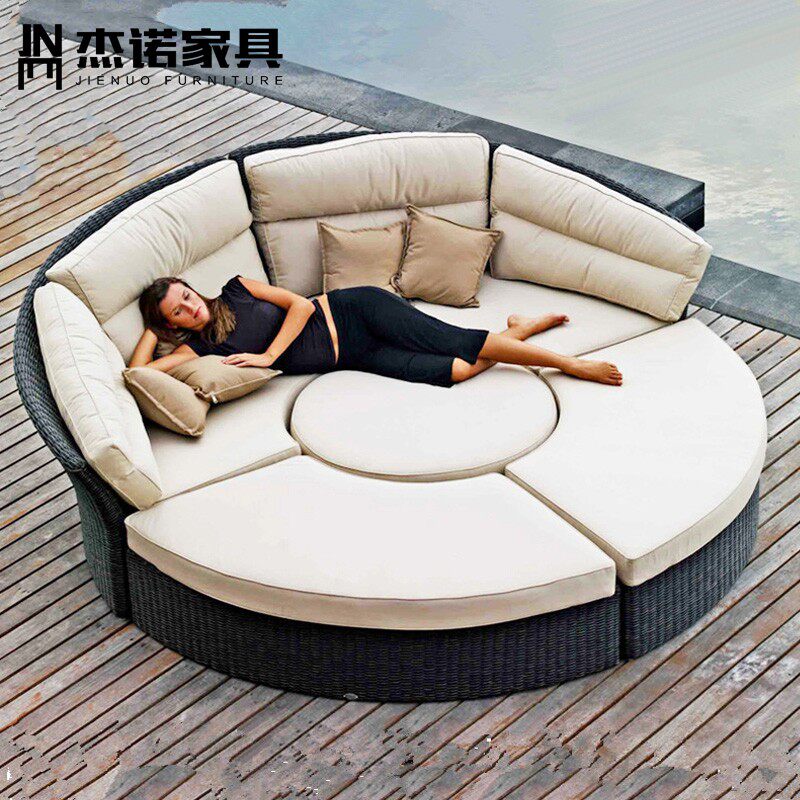 Outdoor balcony deck bed beach bed rattan leisure bed outdoor swimming pool deck chair hotel garden sofa bed terrace - Taobao