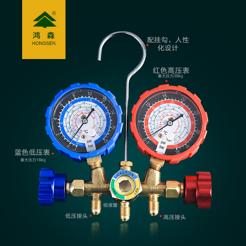 Hongsen Automotive Air Conditioning Fluorine Meter HS-536C Household Snow Pressure Gauge Refrigerant Double Meter Valve Dosing Table R134a