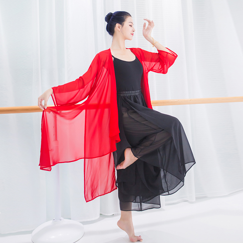 Dance performance suit Classical dance practice suit Women's cloak jacket Elegant chiffon adult body yoga performance dance suit