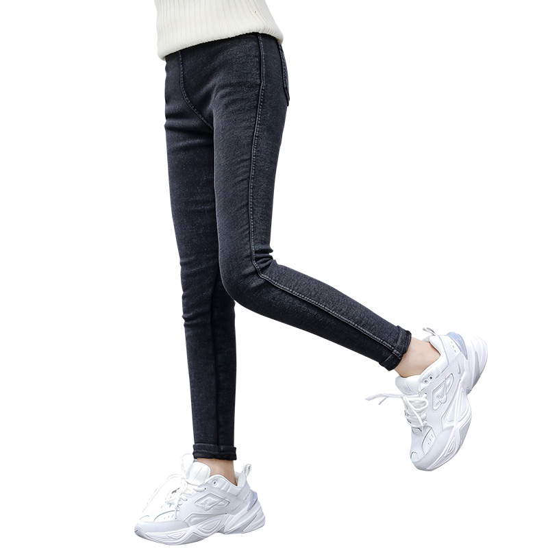 Girls' underwear autumn and winter models plus velvet tights 11 medium and big children's imitation jeans elastic narrow-footed pants for outer wear