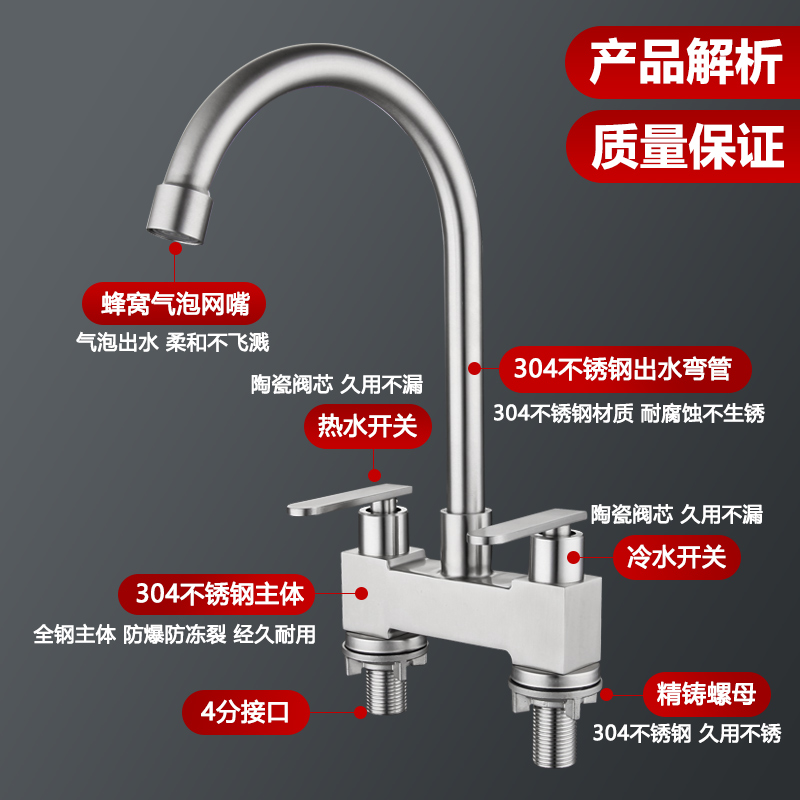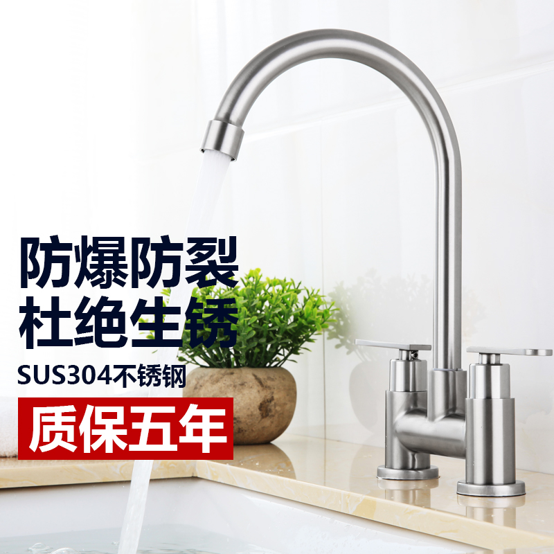 304 stainless steel washbasin double-hole double handle hot and cold tap old fashioned washbasin washbasin double hole tap