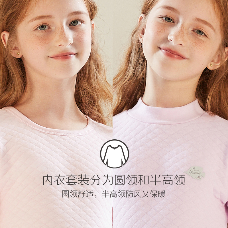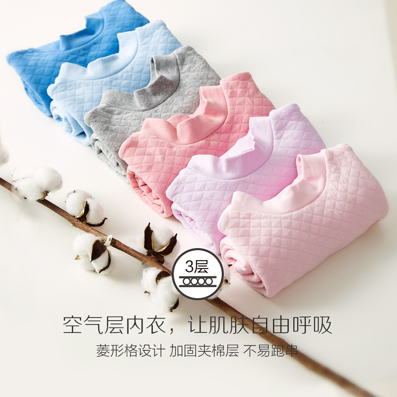 Red bean children's thermal underwear cotton boys and girls high collar middle and big children's quilted autumn clothes sanitary pants heating underwear pre