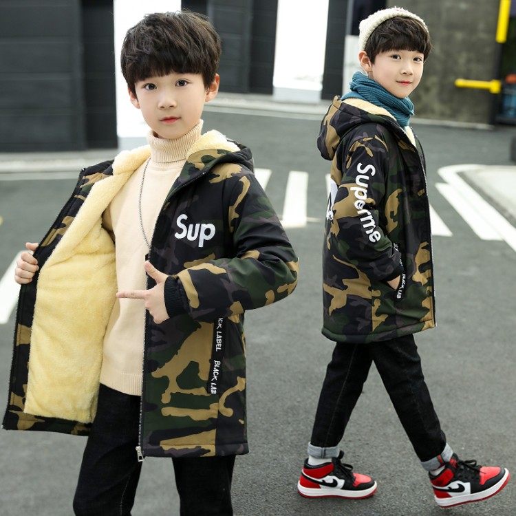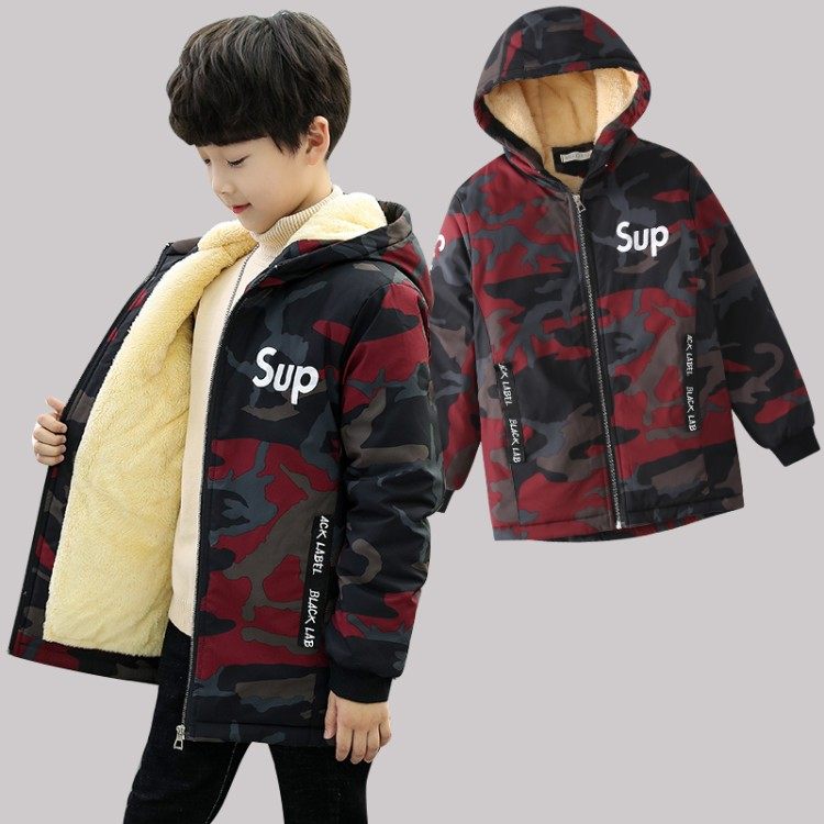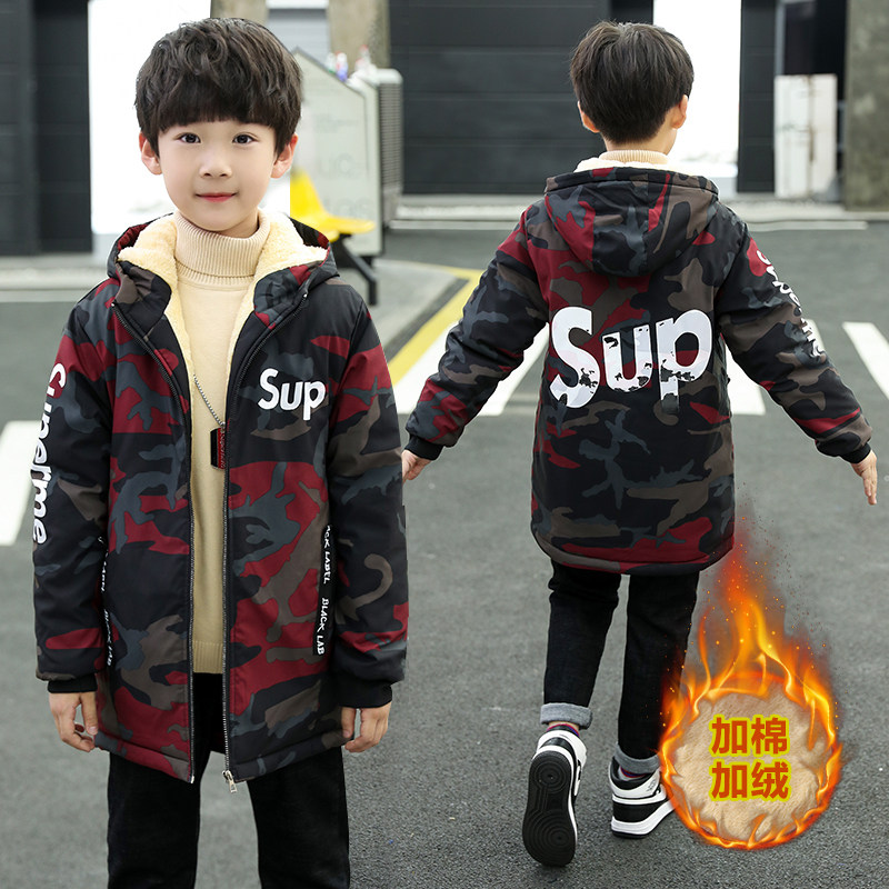 Boys jacket plus velvet thick jacket 2021 new middle-aged children's autumn and winter clothing children's top Western style windbreaker Korean version