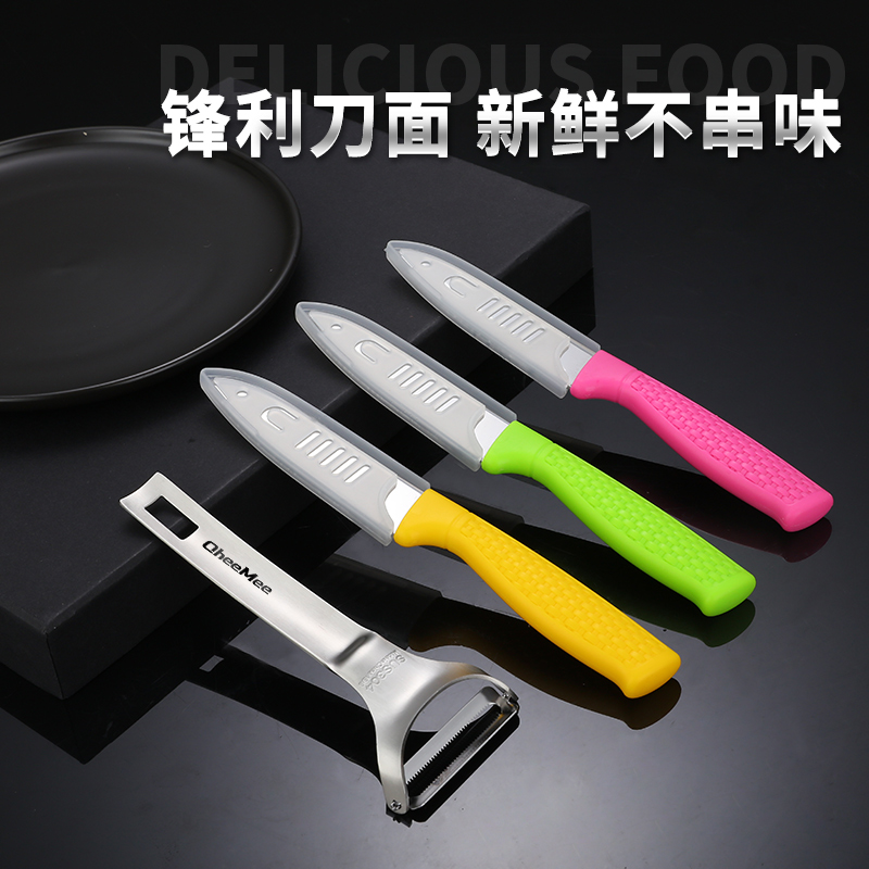 New water fruit knife green (handle color heel knife sleeve) new water fruit knife yellow (handle color heel knife sleeve consistent) new water fruit knife pink (handle color is consistent with the knife sleeve)