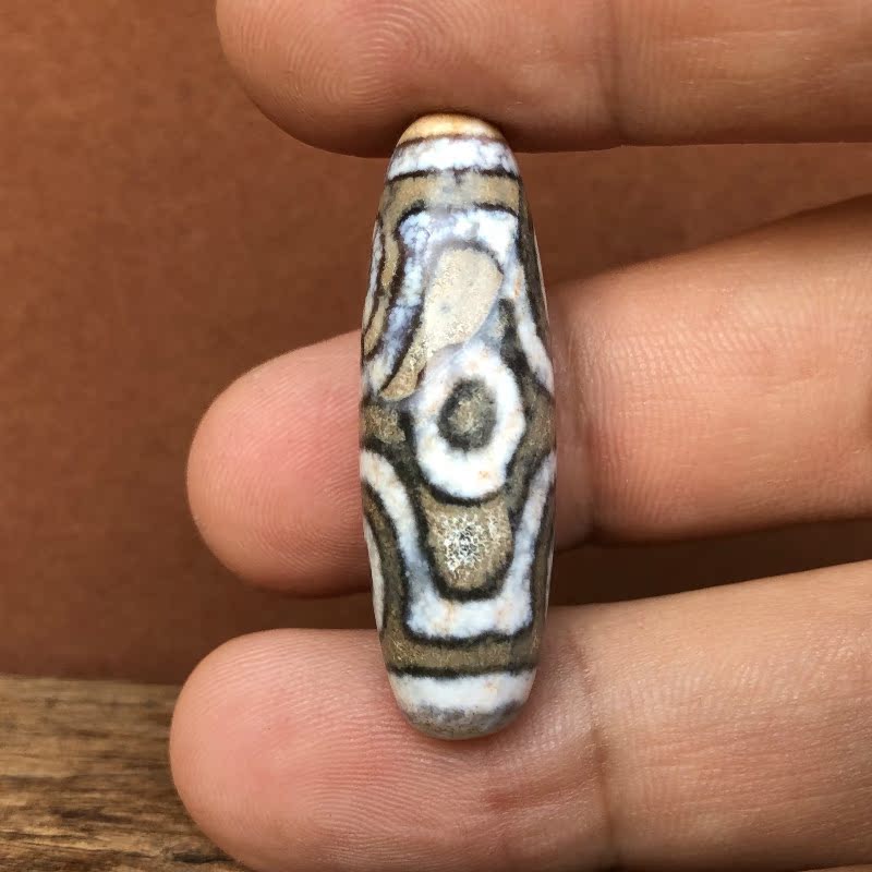 Tibetan Dzi Tibetan Six-Eyed Dzi Natural Cinnabar Fire for Dzi Genuine to Pure Agate Jade Syrup Oil