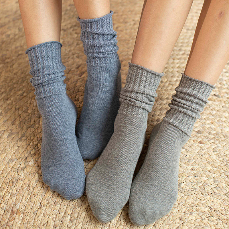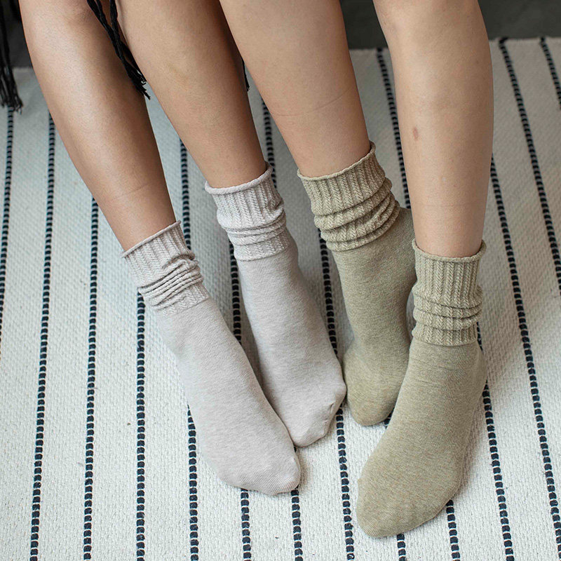 Japanese college style simple solid color twist pattern tube socks Cotton stockings Personality warm women bubble socks socks