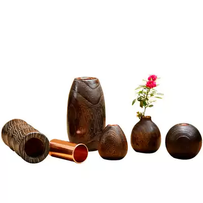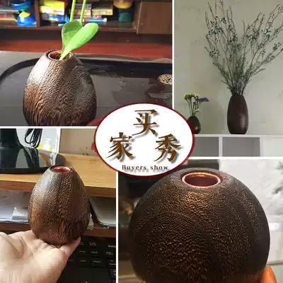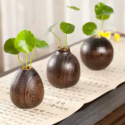 Wooden vase craft gift decoration vase flower arrangement living room desktop small Vase ornaments wooden flower water drop gourd model