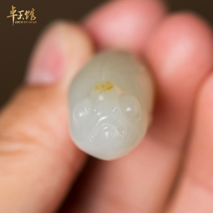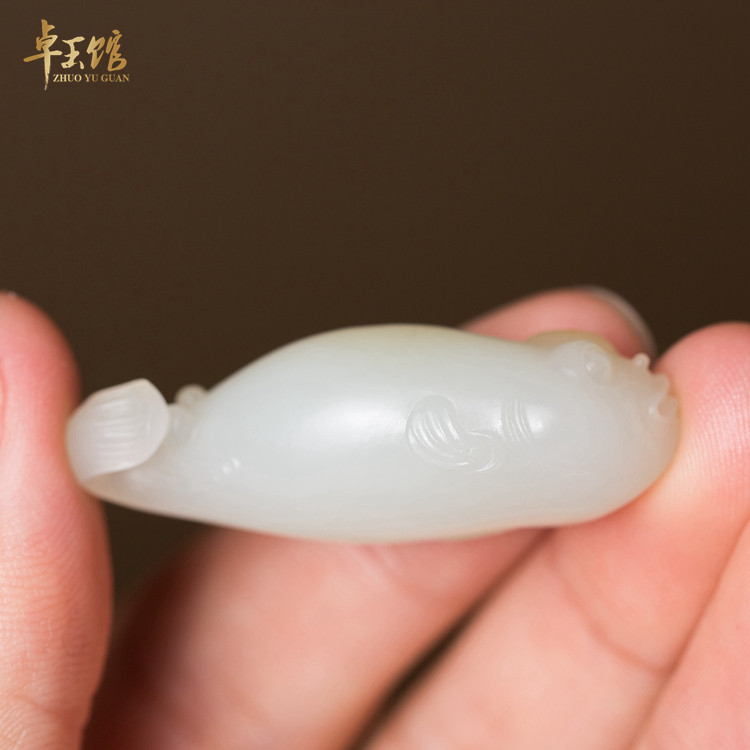 (Fat Fish) Xinjiang Hetian White Jade Seed Sprinkled Gold Leather Pendant Su Gong Zhuoyu Pavilion Li Zhuoyu Carving