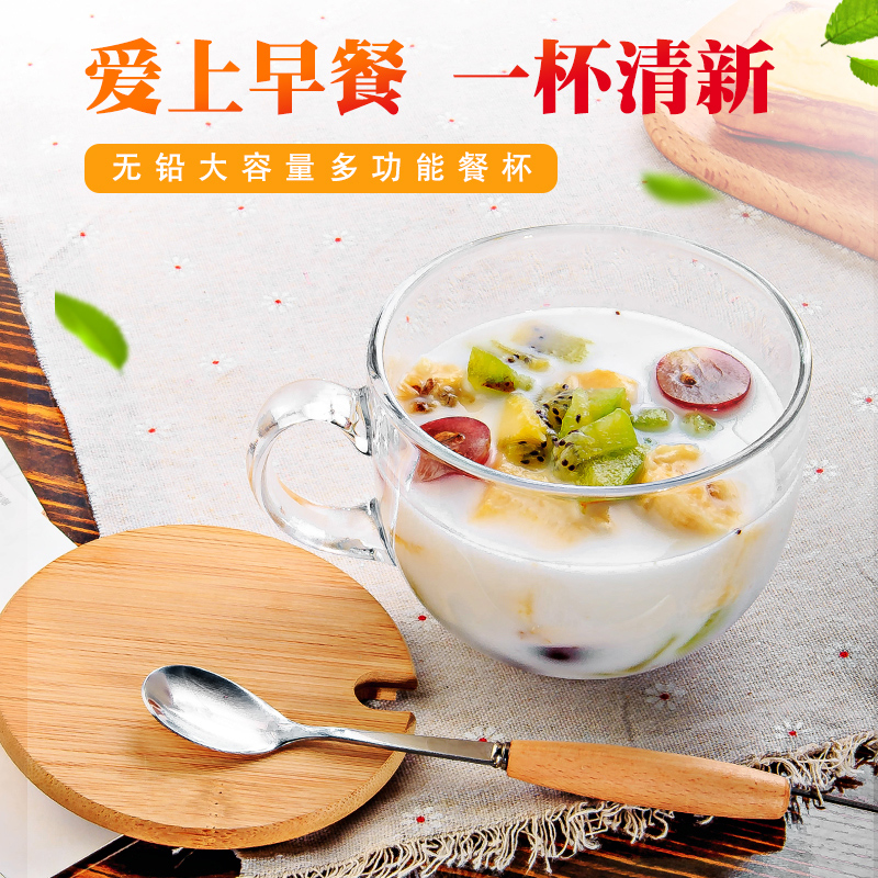 Mug with lid Spoon Water cup Large capacity tempered glass cup Household women's breakfast oat bowl Milk coffee cup