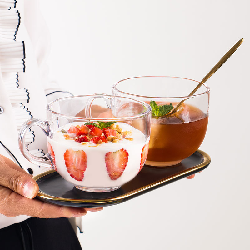 Tempered glass❤Cup wooden spoon(microwave heating)