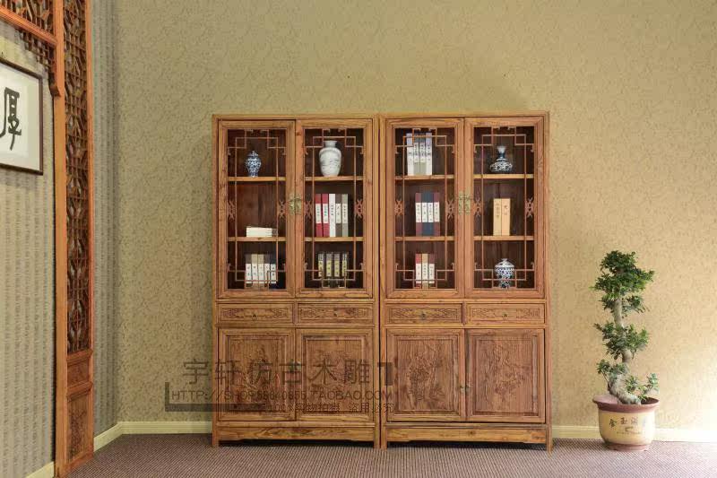 Antique solid wood bookcase Chinese-style bookshelf combination floor-to-ceiling bookcase South Elm Bogu rack shelf