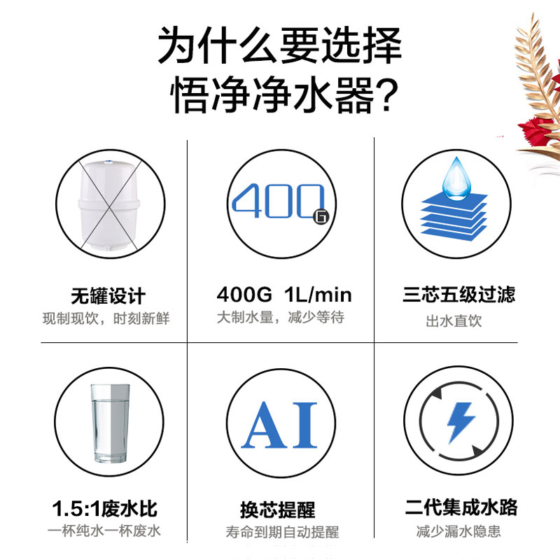 Perfect Water Purifier Home Straight Drinking Ro Reverse Osmosis Kitchen Tap Water Filter Pipeline Machine Heating Suit 400G