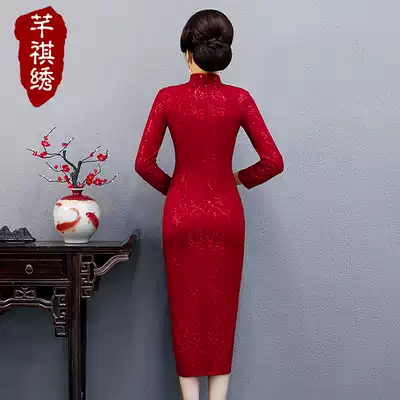 Hot Diamond new cheongsam modified version autumn and winter wedding middle-aged female mother dress banquet long version elegant dress