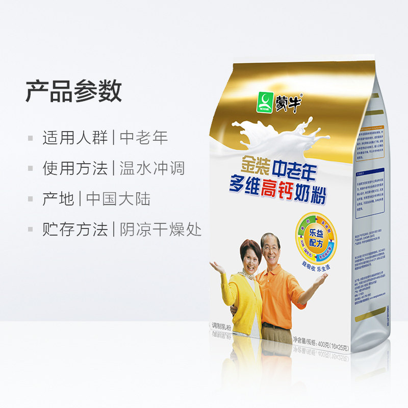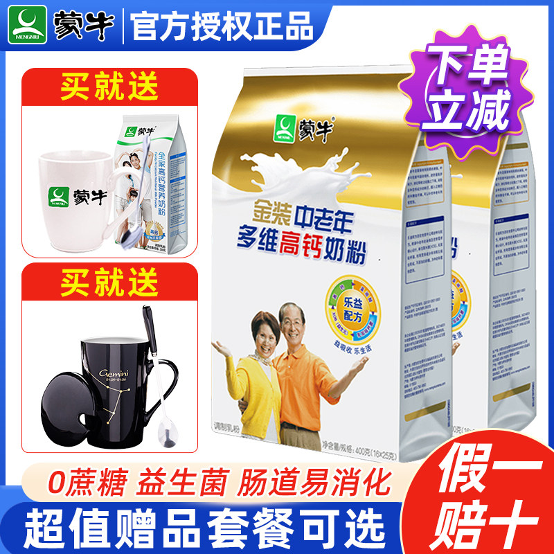 (Shop Long Recommended) Gold loaded Mengniu Middle aged milk powder 400g * 2 sacks (Sending Horoscope Cup Spoon) Pump Mengniu Aged Milk Powder 400g * 2 sacks (sent to Mengniu Cup spoons) Supergold Loaded Mengniu