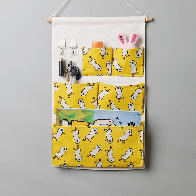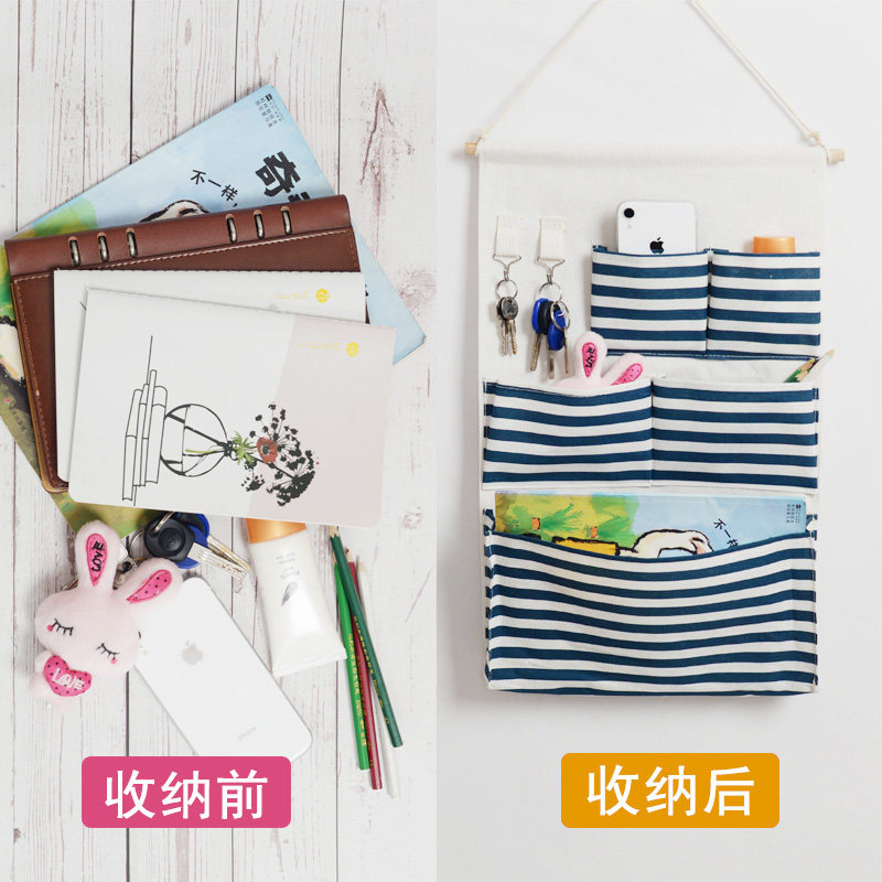 Fabric storage bag hanging bag wall-mounted wall-mounted cute hanging pocket mobile phone door behind the bedside storage bag dormitory artifact