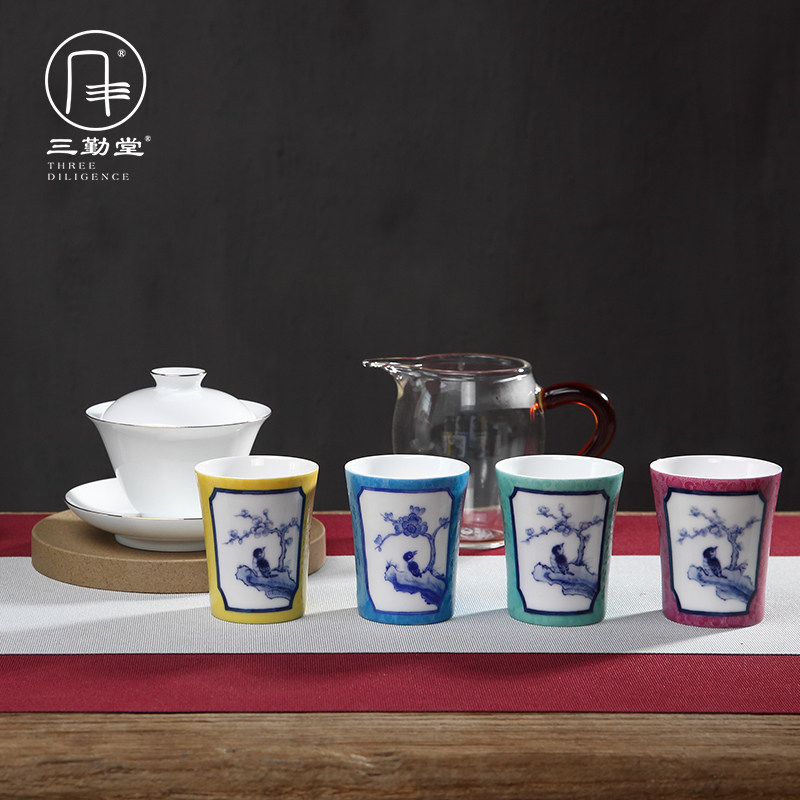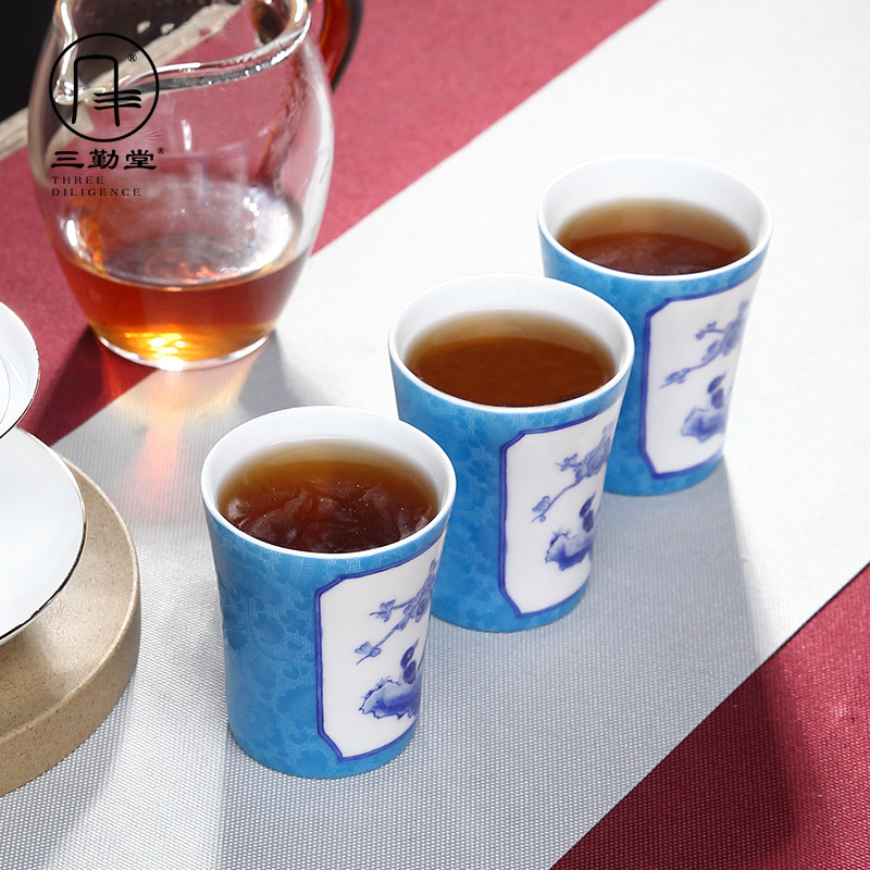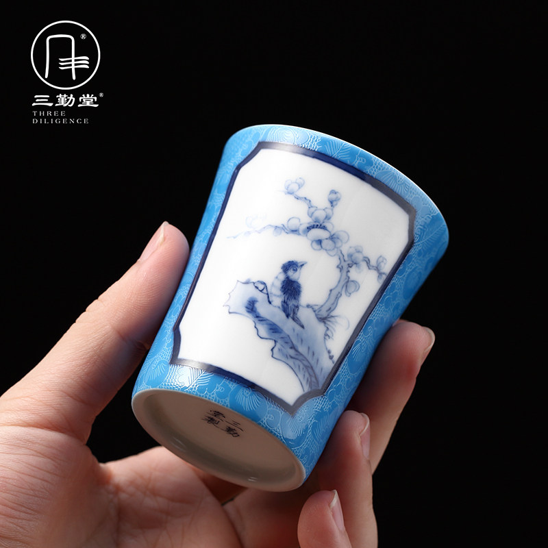 Sanqintang small tea cup grilled Flower Master Cup ceramic tea single Cup Jingdezhen hand-rolled Road traditional collection hand-painted