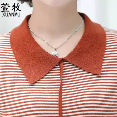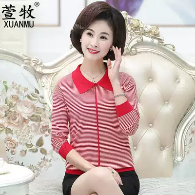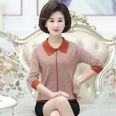 Mother Spring Autumn long sleeve top 2021 New lapel striped knit thin base shirt middle age women's shirt
