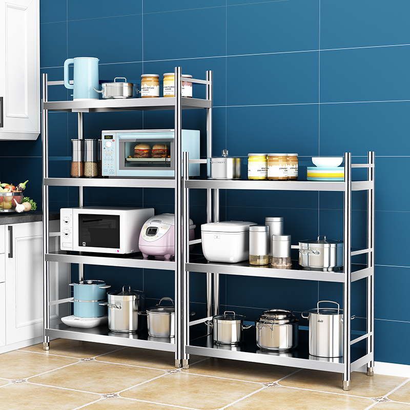 Four-layer stainless steel shelf kitchen 4-layer shelf Floor-to-ceiling storage oven to place seasoning pot rack bowl rack 3