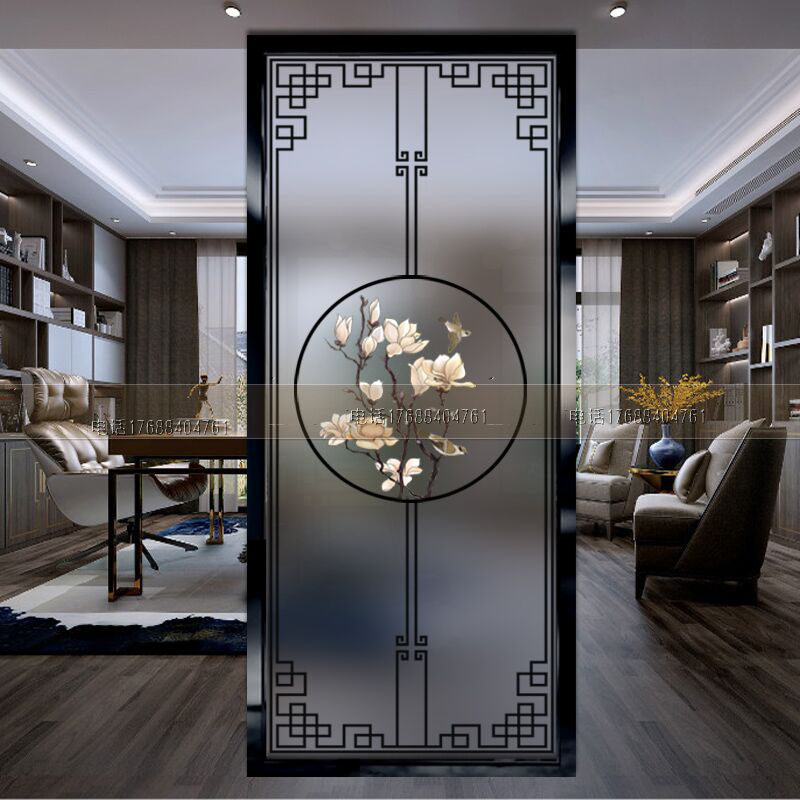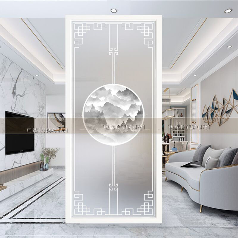 Modern simple new Chinese style living room glass screen partition wall bedroom blocking home entry translucent porch background