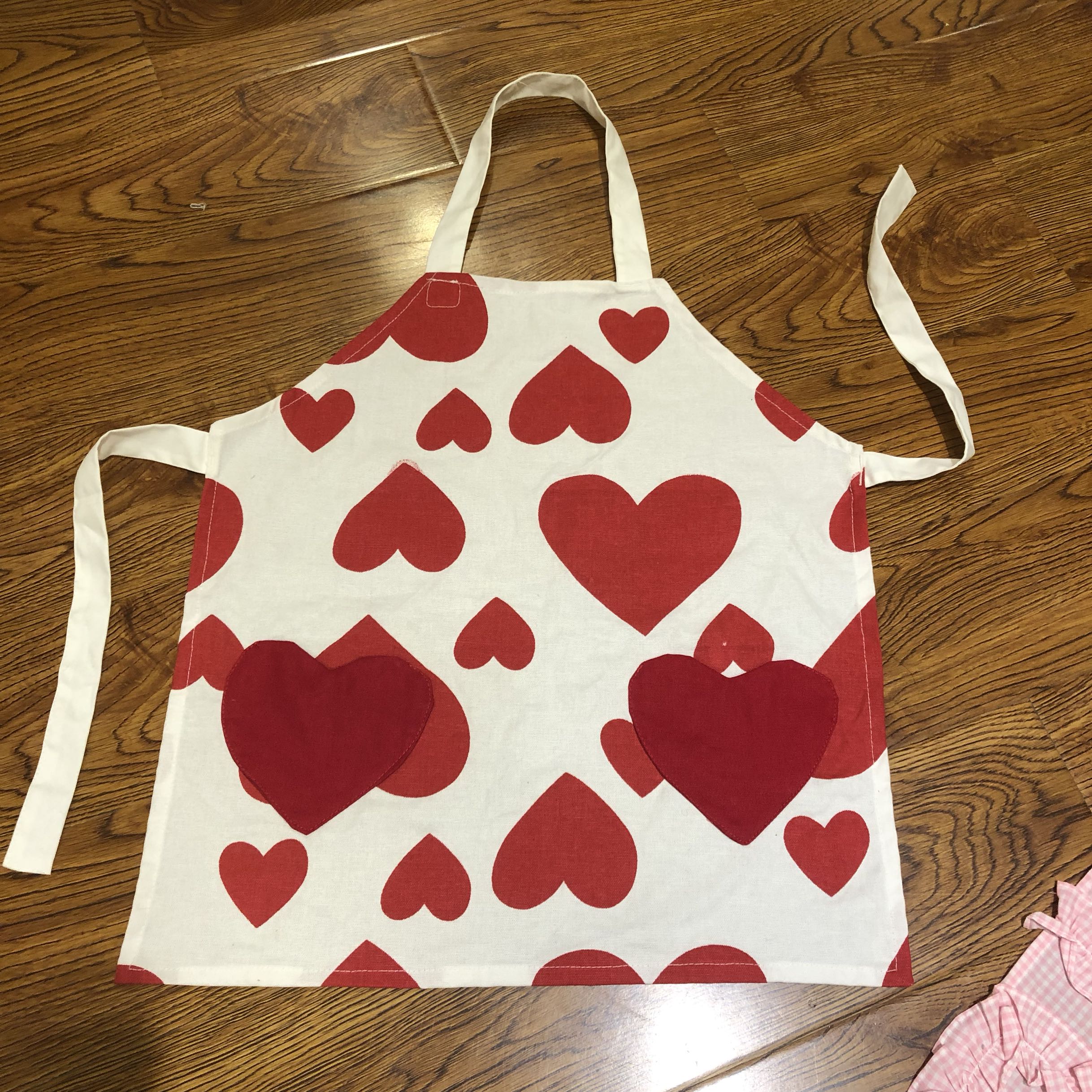 Canvas Red Heart-shaped Apron Blue Striped Waterproof Apron Powder Plaid Pure Cotton Apron