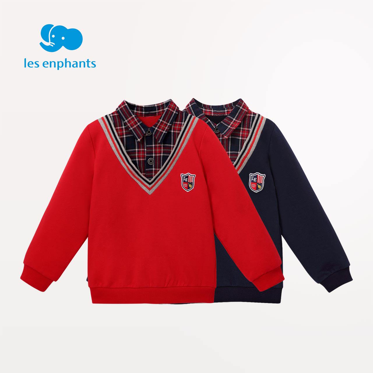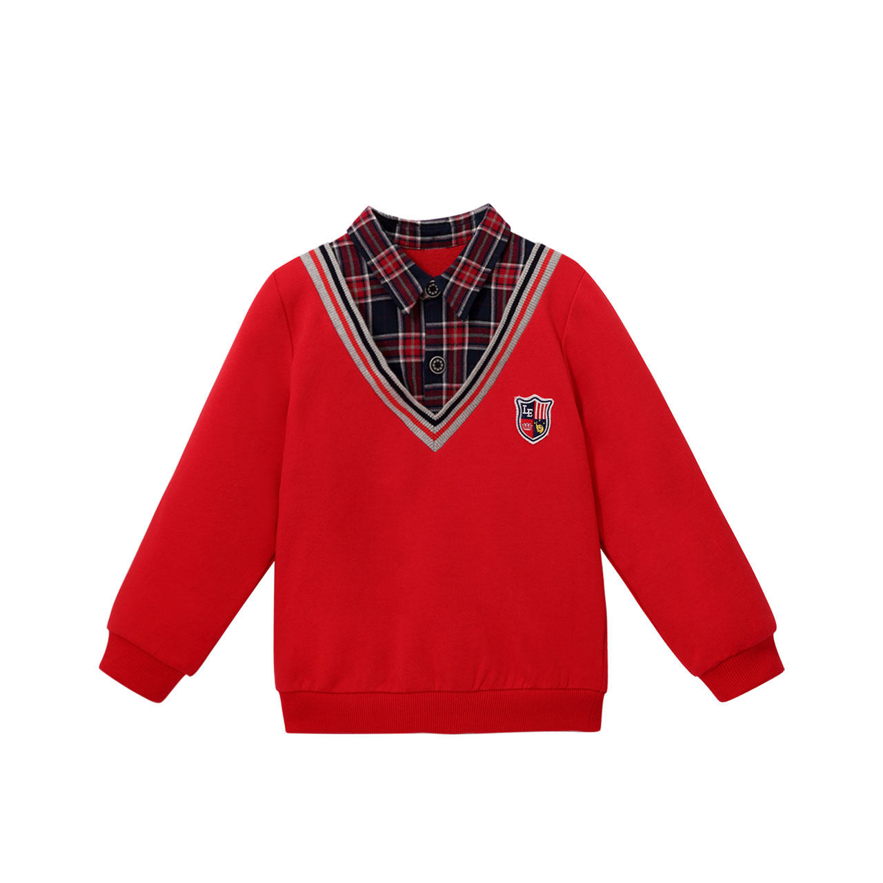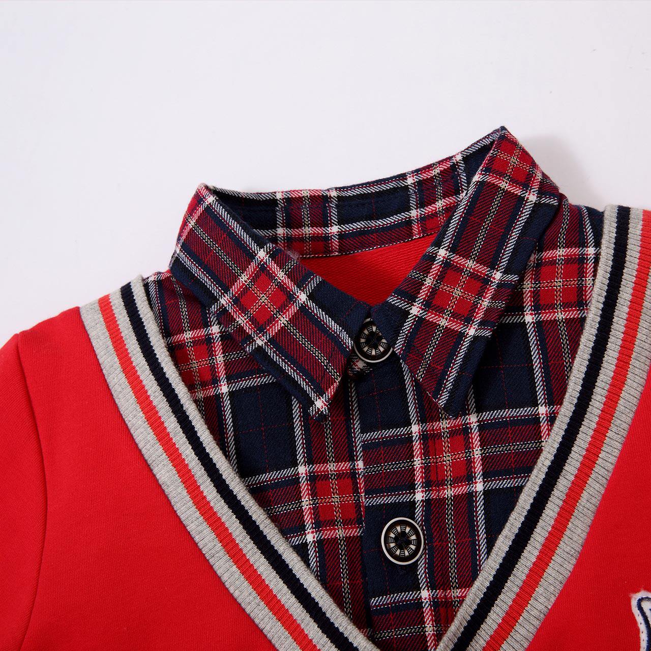 Li Baby room Children's clothing Boys British style long-sleeved thick cotton T male baby casual fake two plaid autumn new