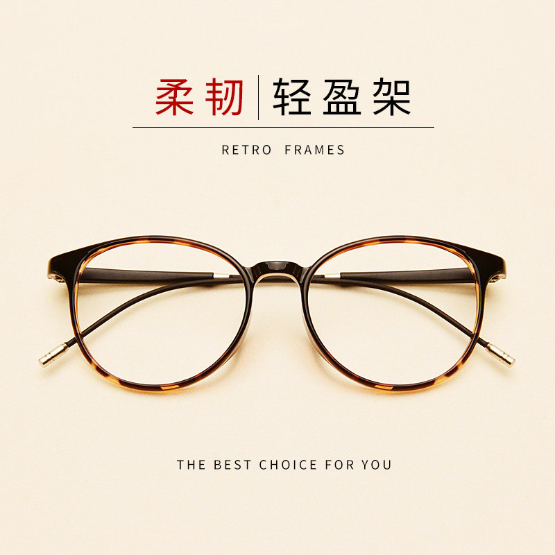 Round Frame Hawksbill Turtle retro TR90 can be matched with myopia glasses female with degree black frame glasses Men's Han version Tide Round Face Glasses Frame