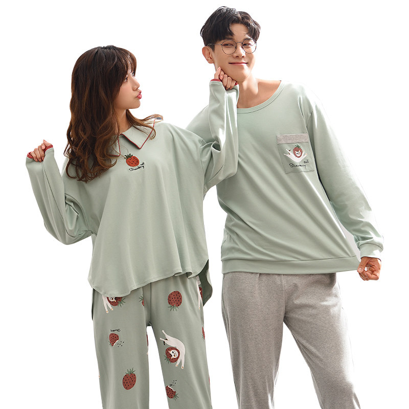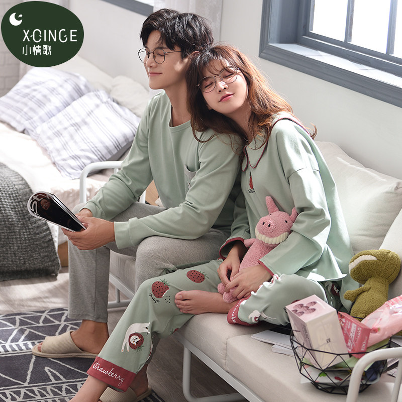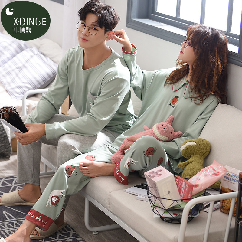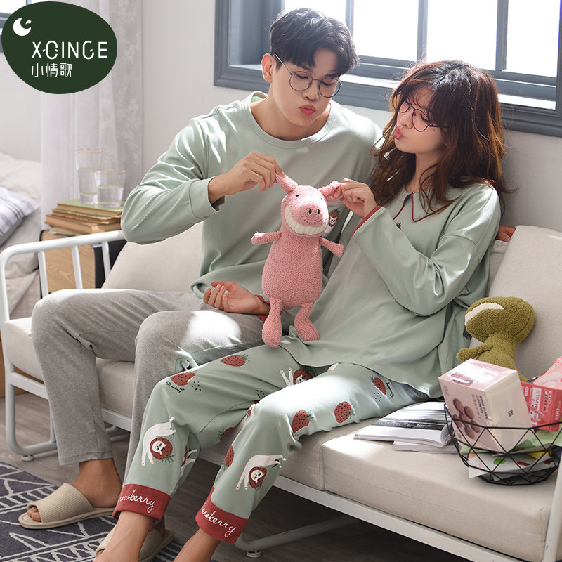 Couple pajamas spring and autumn men's cotton home clothes girls cute strawberry two-piece Korean version autumn and winter suits