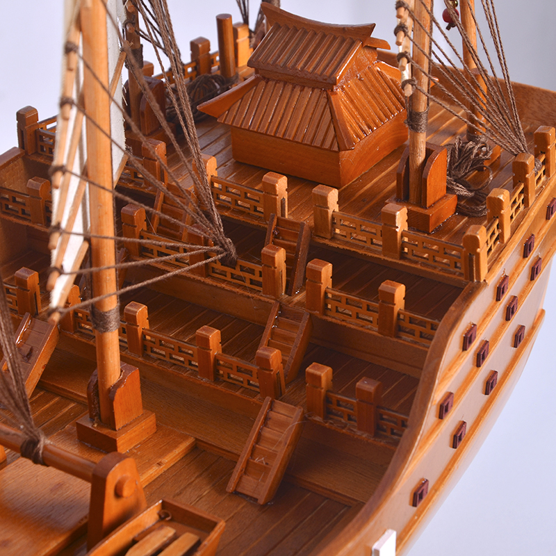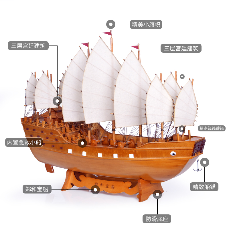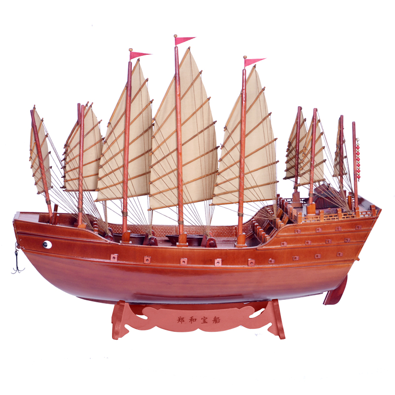 Ancient smooth sailing Ming Dynasty Zheng He treasure ship sailboat model wooden simulation boat creative decoration wooden boat ornament