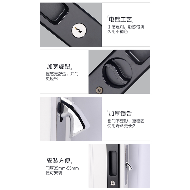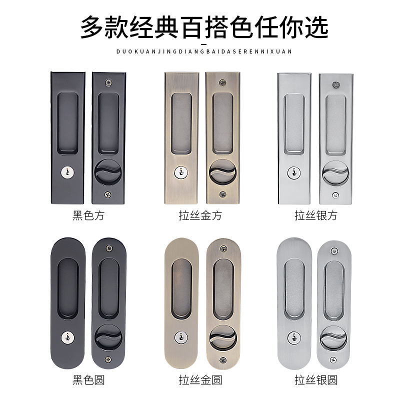 ROODD sliding door lock Invisible black European style indoor bedroom door lock Powder room sliding door square lock lock