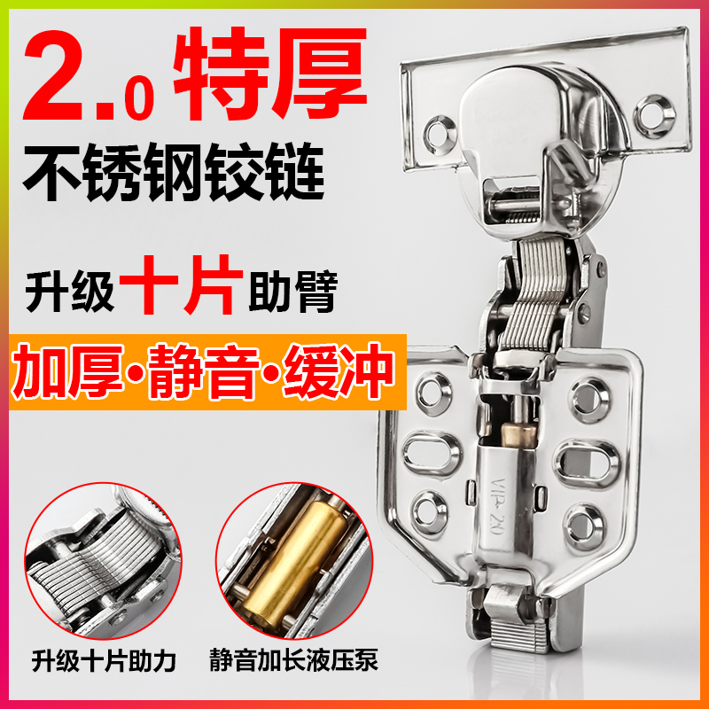 304 stainless steel hinge damping buffer cabinet door hinge Wardrobe curved half cover hinge Hydraulic plane hinge