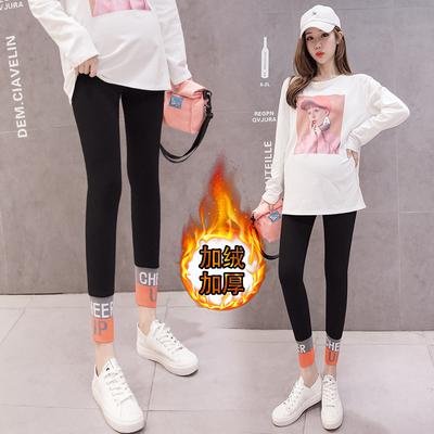 Pregnant women punching trousers in spring and autumn wearing plush leisure pregnant women's pants and sweating dress