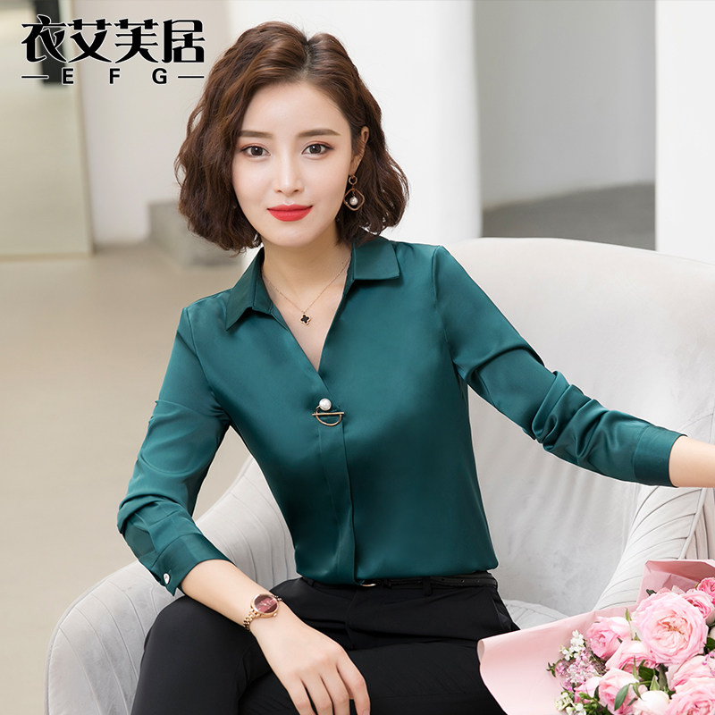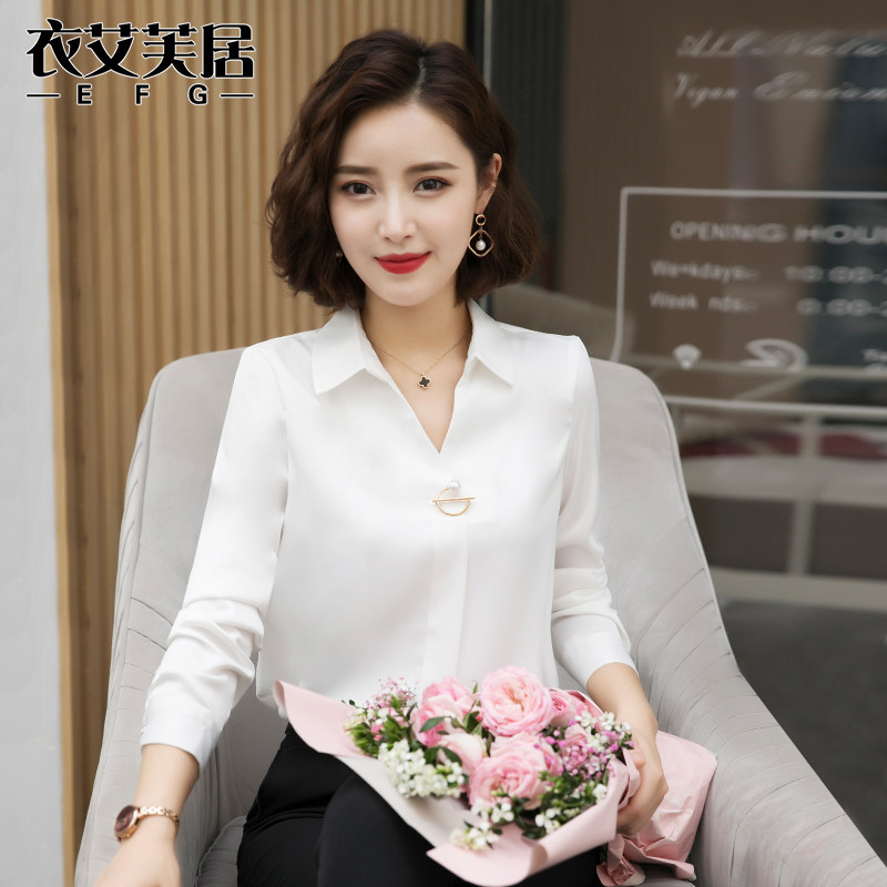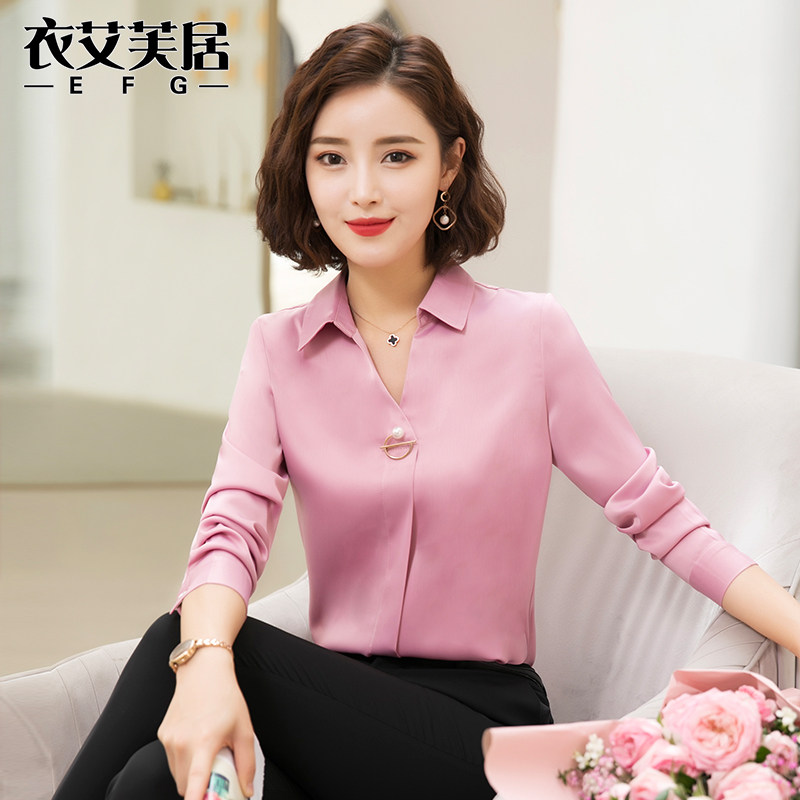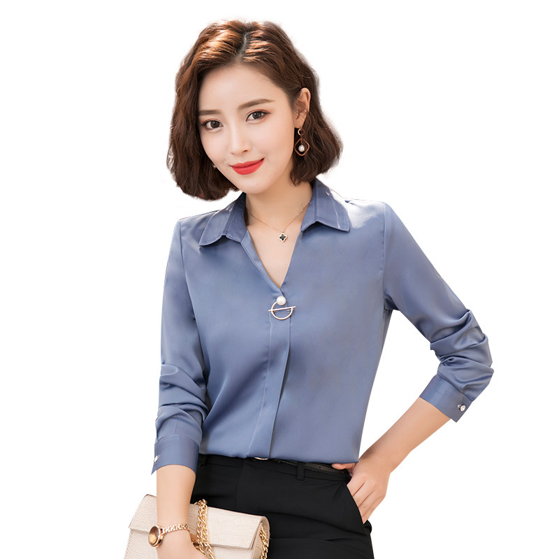 Snowspun Shirt Woman Long Sleeve V Collar Professional Shirt Temperament Work Suit Korean Version Fashion Shirt Loose 100 Hitch Blouse Tide