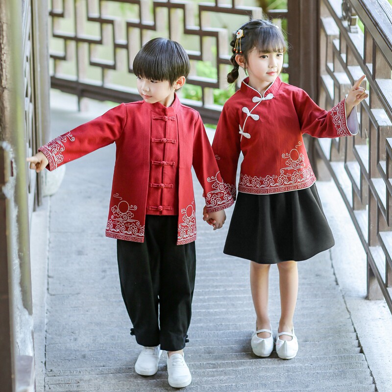 Kindergarten garden uniform Spring and Autumn Hanfu Primary school uniform National style Children's class suit suit Chinese style