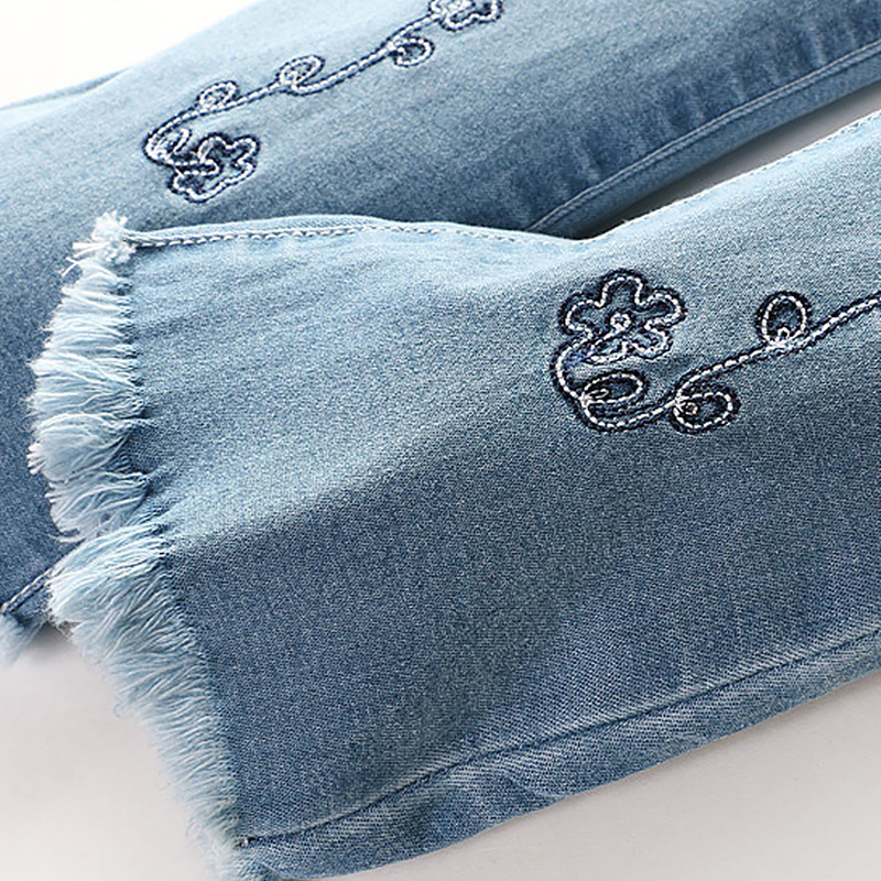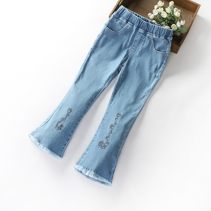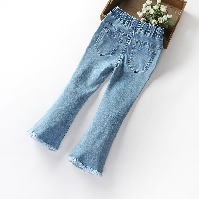 Girl Denim Small Horn Pants Spring Autumn Clothing 2021 New CUHK Girl Scouts Girls Leisure Micro Breeze Trousers