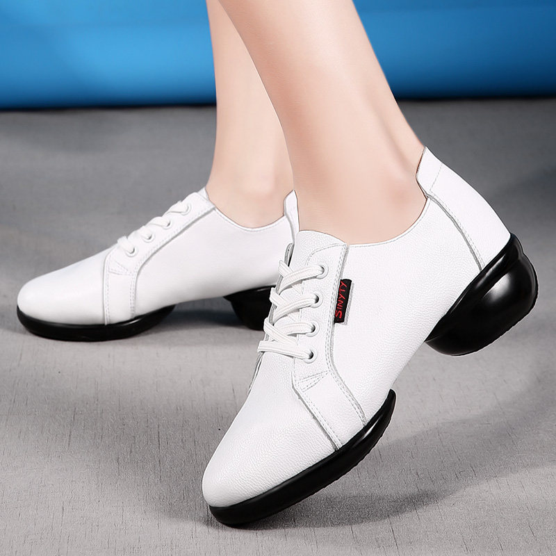 Square Dance Shoes Women's Summer Dance Shoes Net Face Soft Bottom Genuine Leather Dancing Shoes Adults White Ghost Walking Water Soldiers Dance Shoes Women