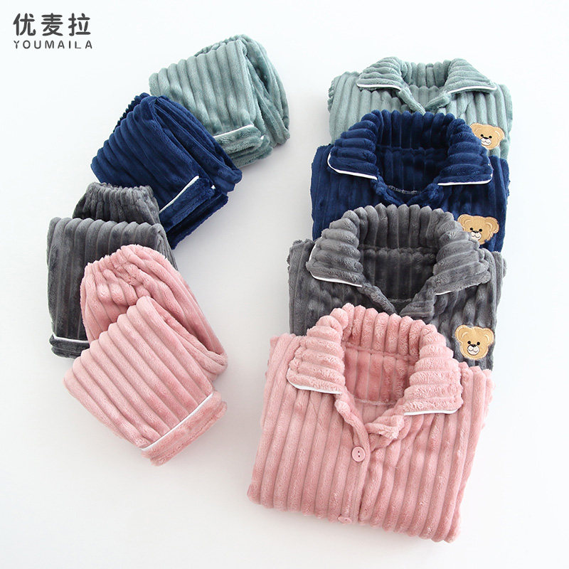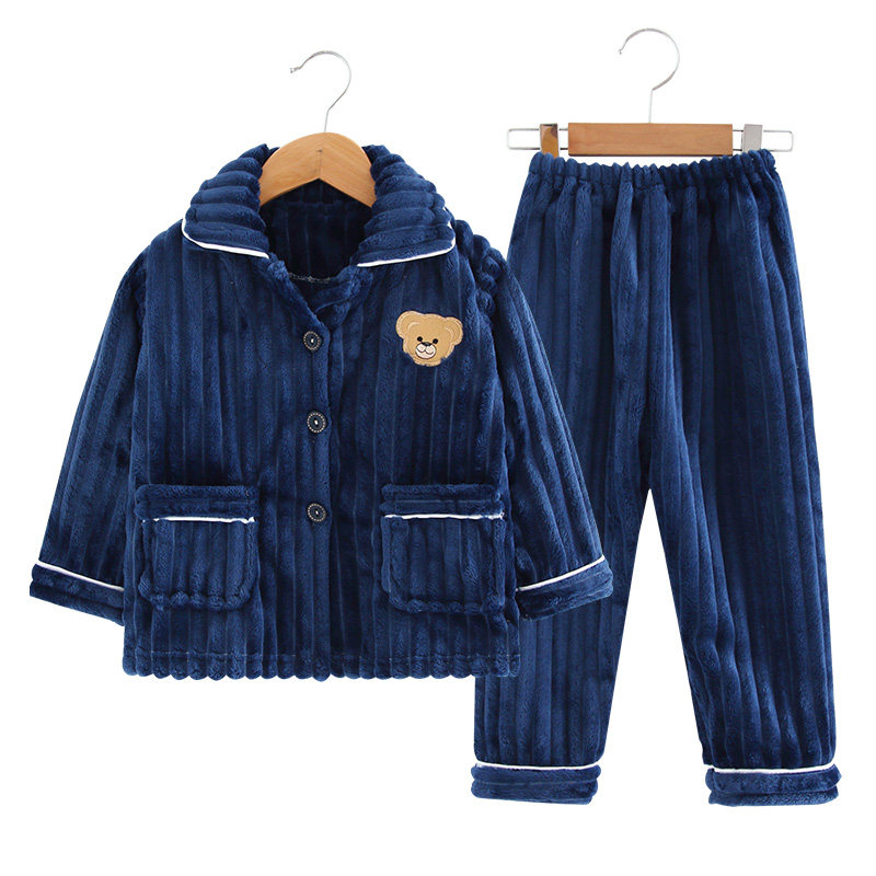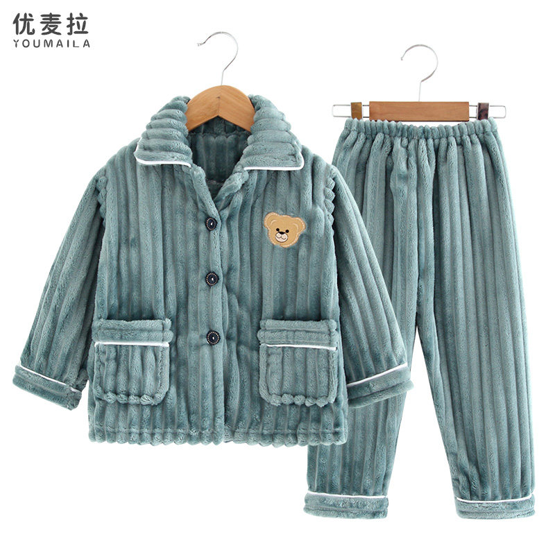 Autumn and winter children's flannel pajamas boy suit thick coral fleece boy warm girl baby home clothes - Taobao