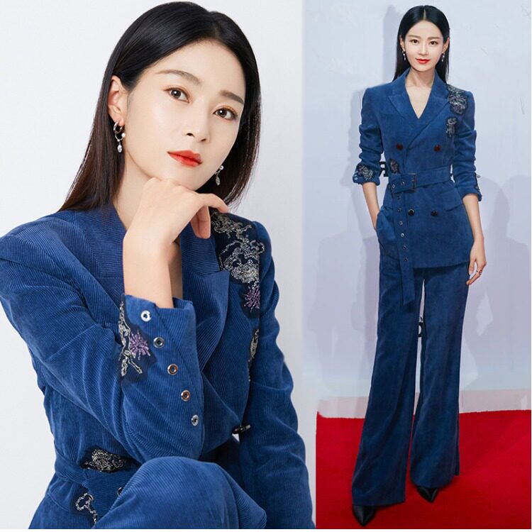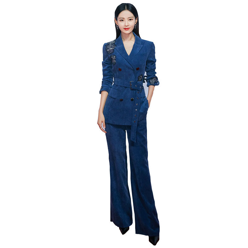 Stars Same High-end Lamp Core Suede Suit Suit Woman Spring Autumn Korean version Temperament Silk Suede Horn Pants Two Sets