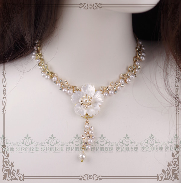Original * Flowers not spoken I*Bailed flowers Short necklace of pearl chain - Classical Lolita Old Fair Accessories