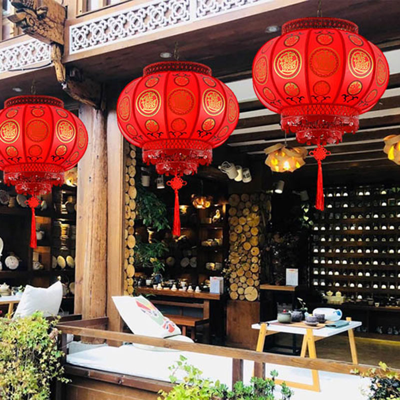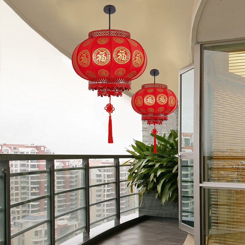 Imitation Goat Leather Big Red Fu Character Round New Year Joe Relocation Decoration Chinese Style Balcony Chandelia Hotel Teahouse Outdoor Waterproof Lantern
